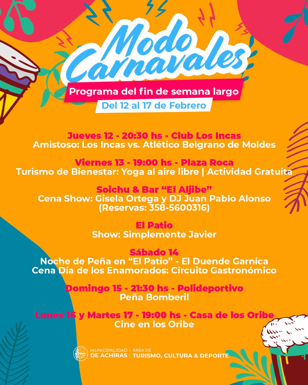 Seguí disfrutando tus vacaciones en Achiras!! Mira todo lo que tenemos para vos...